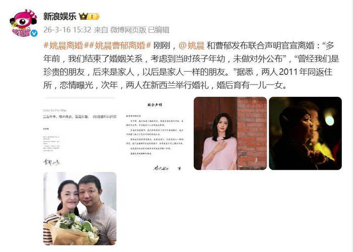 回顾姚晨第一次离婚,与前夫凌潇肃闹得鸡飞狗跳,互撕出轨黑料,场面十分惨烈。而此次与曹郁的离婚却异常和平,不仅没有撕逼,还一起开公司搞事业,网友调侃这哪里是离婚,分明是“拆分合伙人”,认为姚晨在感情处理上已成长许多,比剧本情节还要顺畅。